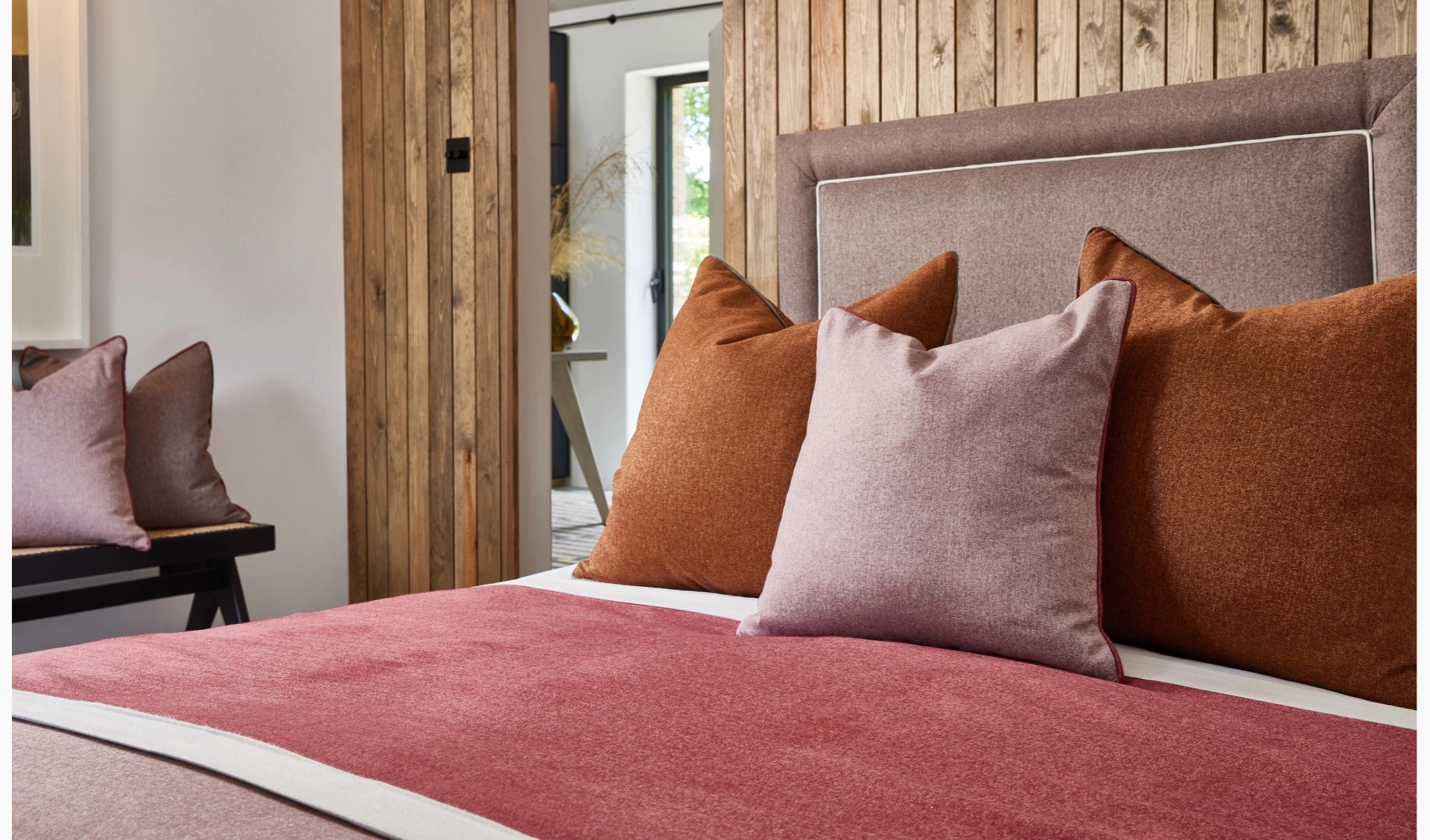 Des fauteuils scandinaves avant rénovation avec un tissu"uni beige", les clients voulaient du dynamisme dans leur intérieur, les couleurs Cerise et mandarine du tissu Enoa perfect de l’éditeur Casal, ont relevé le défi.